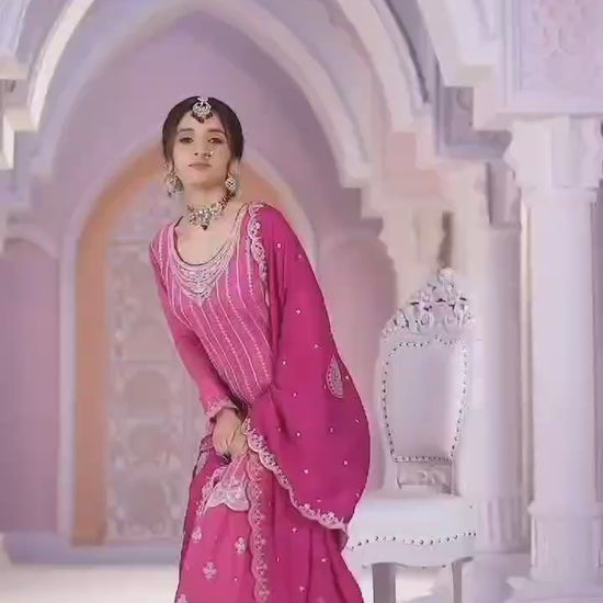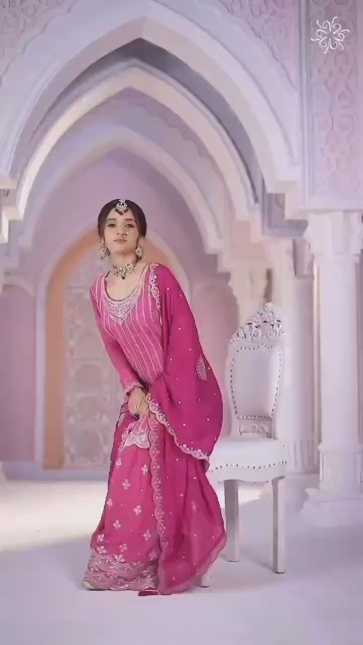Top :- Heavy chinon & Emb multi Coding work Santoon Inner