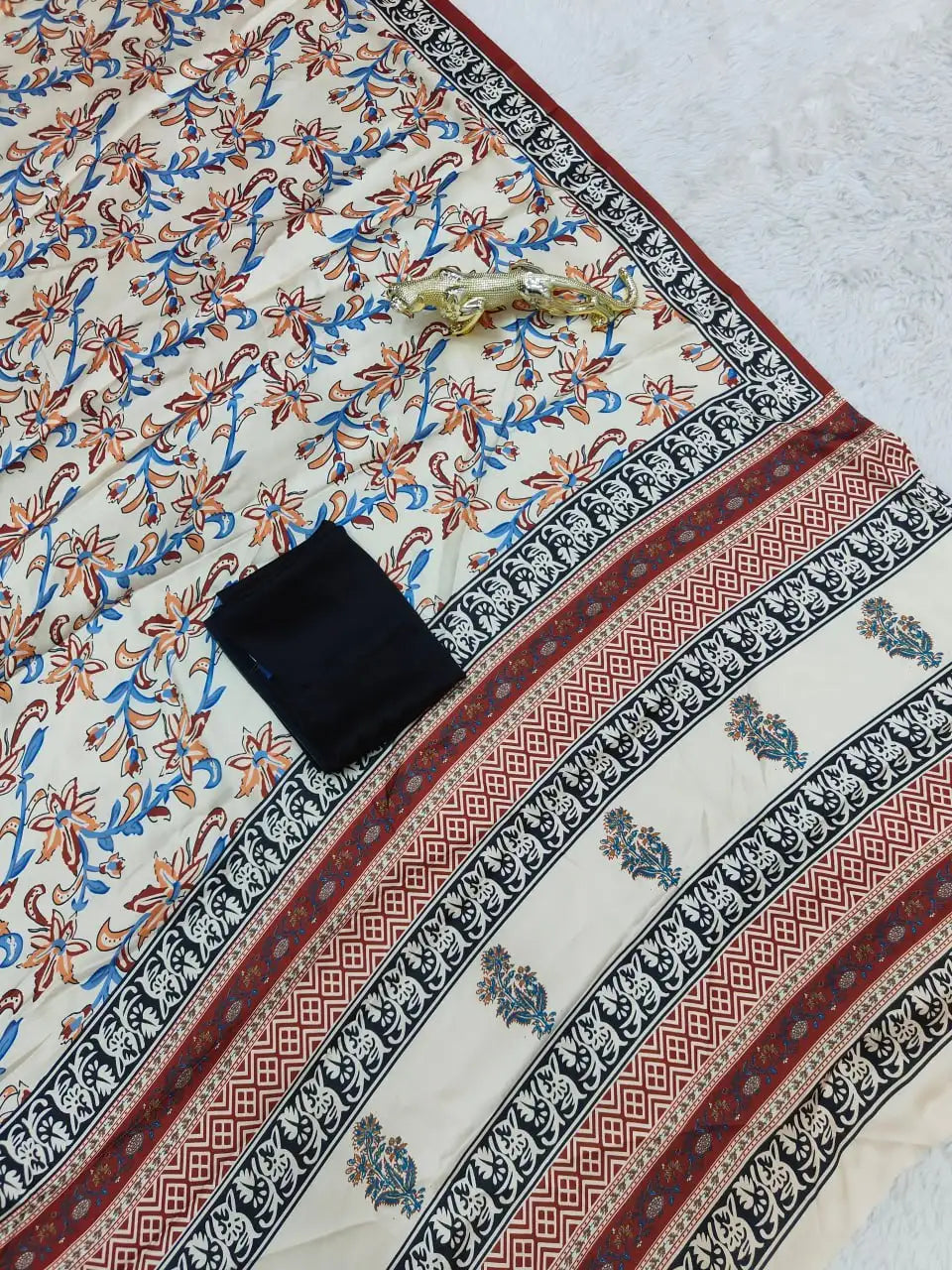 Ajrakh Print Semi Gajji Silk Saree with Rich Pallu & Contrast Blouse – SF-2302