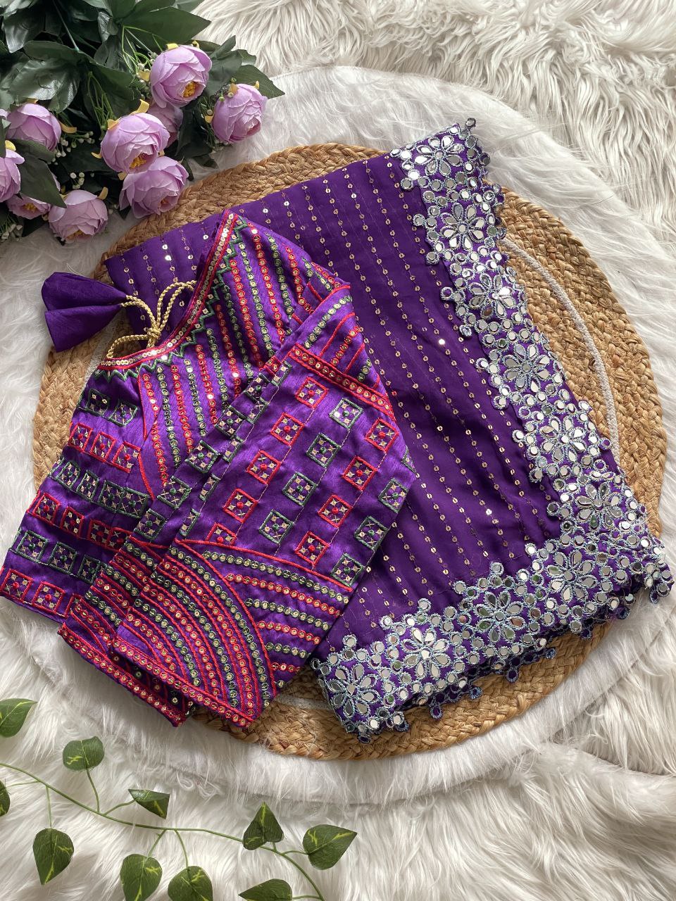 Heavy Coading Lace Border in Saree with Original Mirror