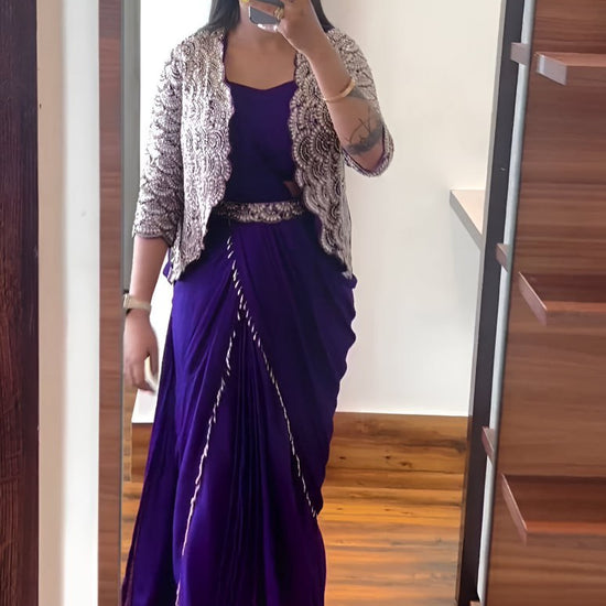 Chinnon Silk with Multi-Thread Embroidery Sequins Ready To Wear Saree With Koti