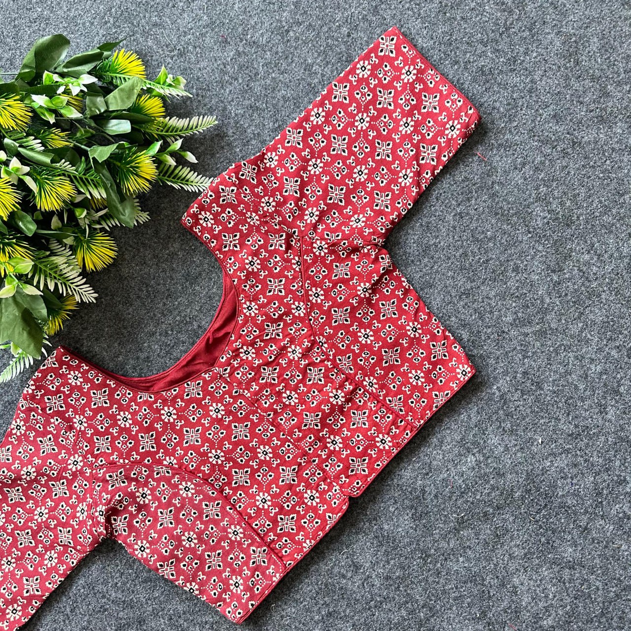 Cotton Ajrakh Print BoatNeck Neck Blouse