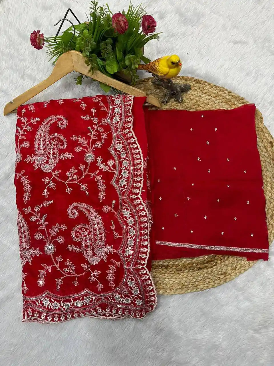 Designer Bollywood Fandy Satin Silk Saree – Embroidery & Sequins Work | Code 6033