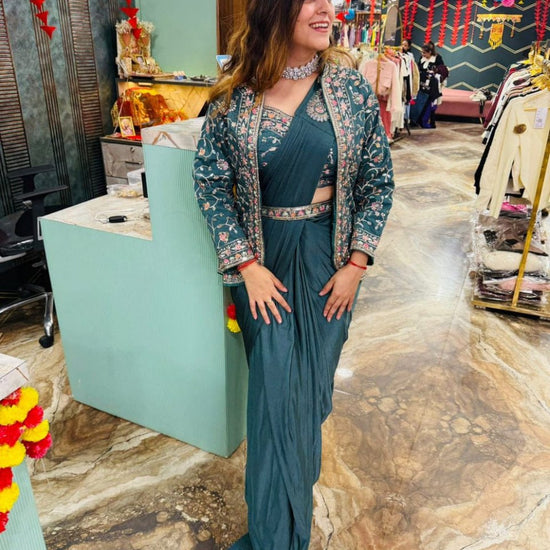 Diamond Satin Silk Ready To Wear Saree With Jacket