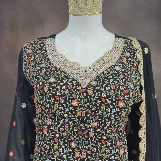 Fabric: Faux Georgette Heavy Embroidery with 3mm & 5mm Sequence + Viscose Thread Work Length: Max up to 37"