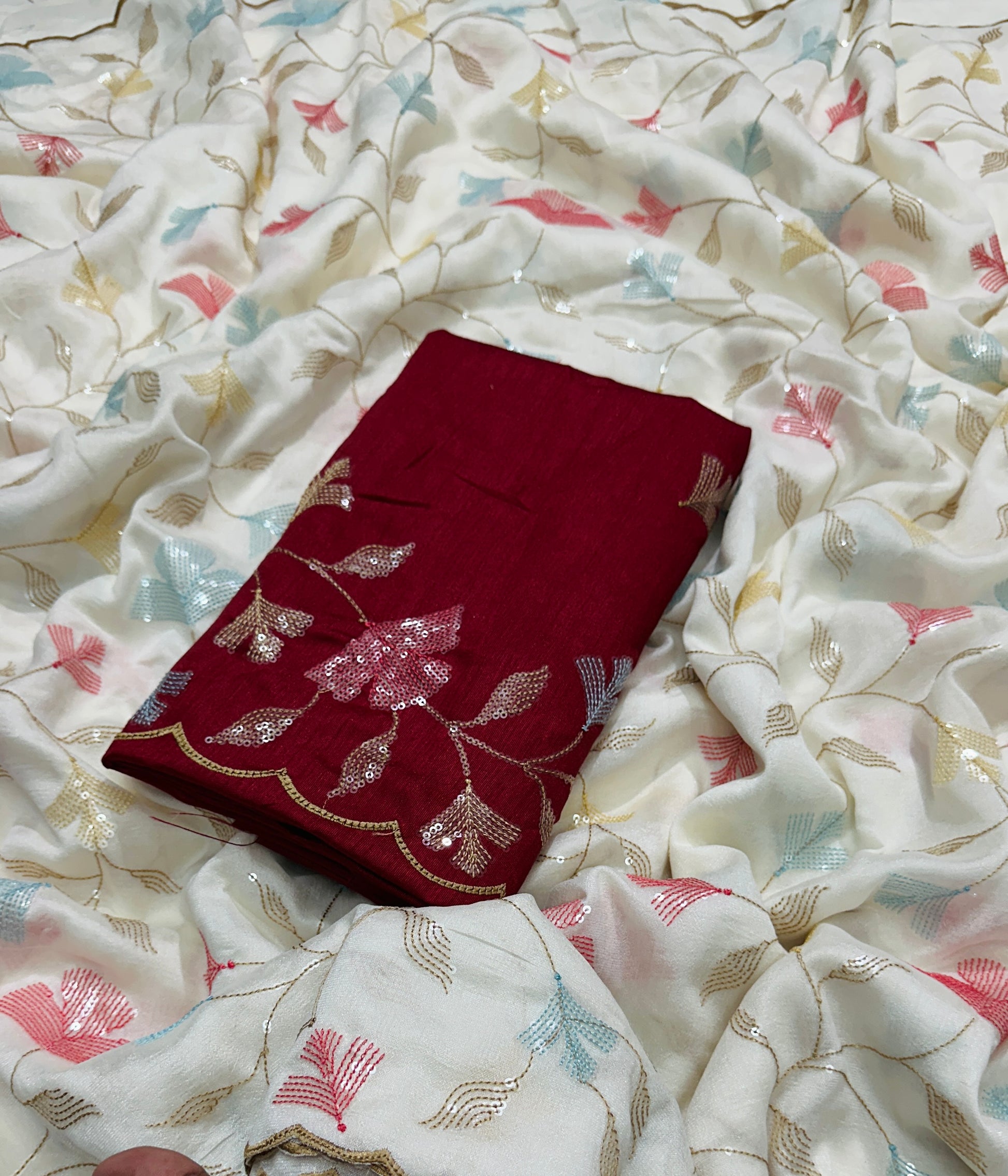 Blouse: Contrast matching Cotton Silk with elegant embroidery work.