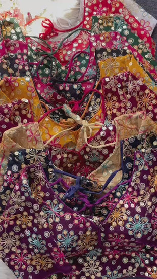 Design: Traditional yet trendy partywear blouse with beautiful neck pattern, heavy stitching, padded for comfort, and back-open style