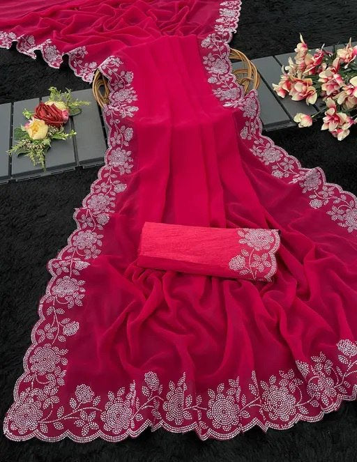 Fabric: Georgette Blooming Swarovski Work with Pallu Latkan