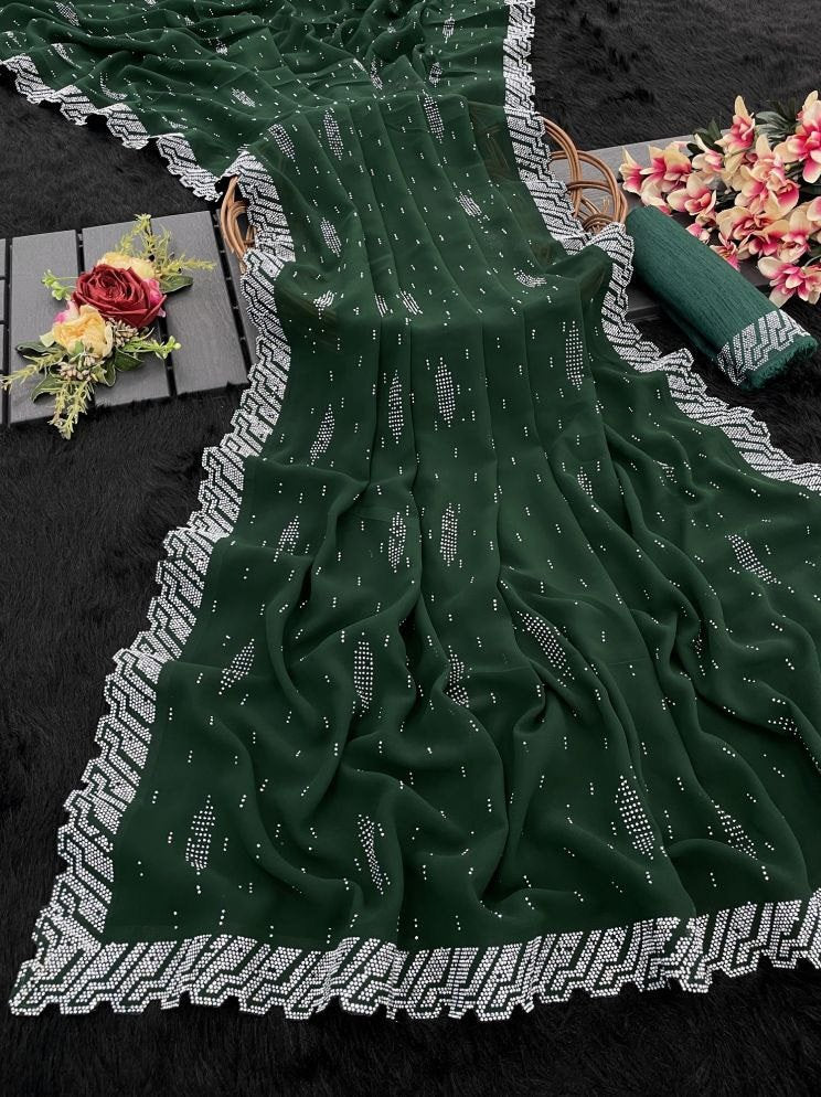 Fabric : Georgette Blooming saree with beautiful Swaroski work and pallu latkan