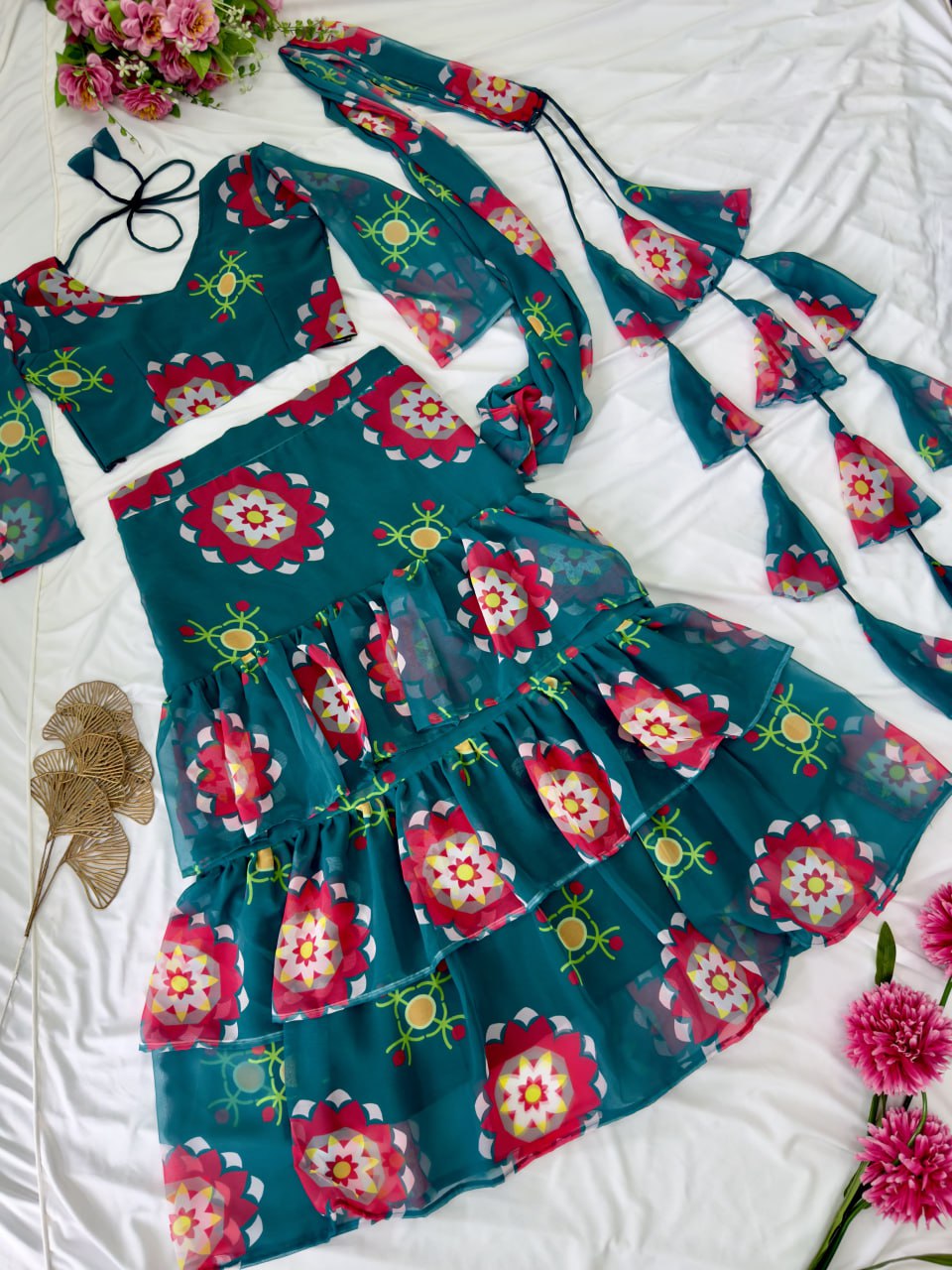 Georgette with Digital Print Ready To Wear Lehenga Saree