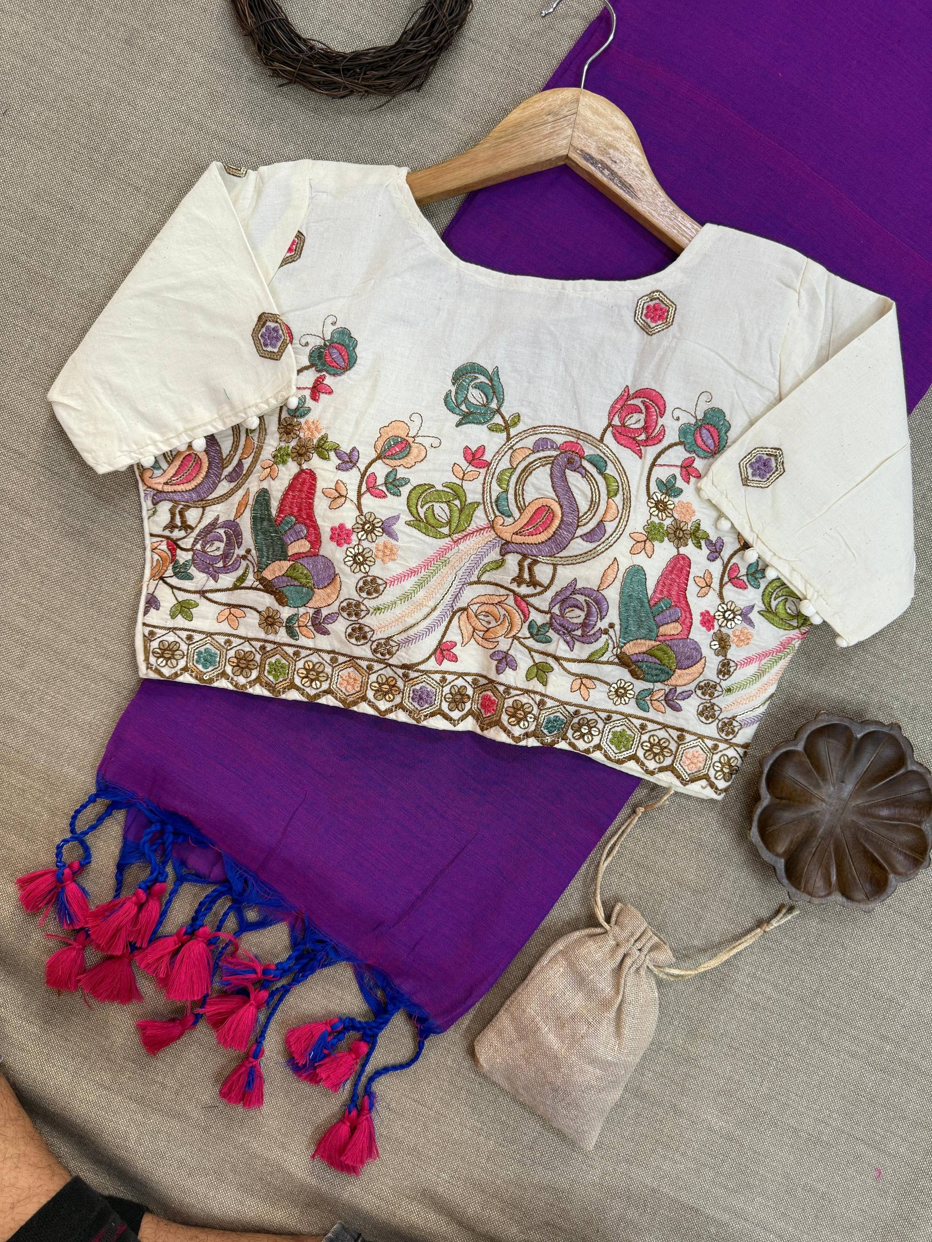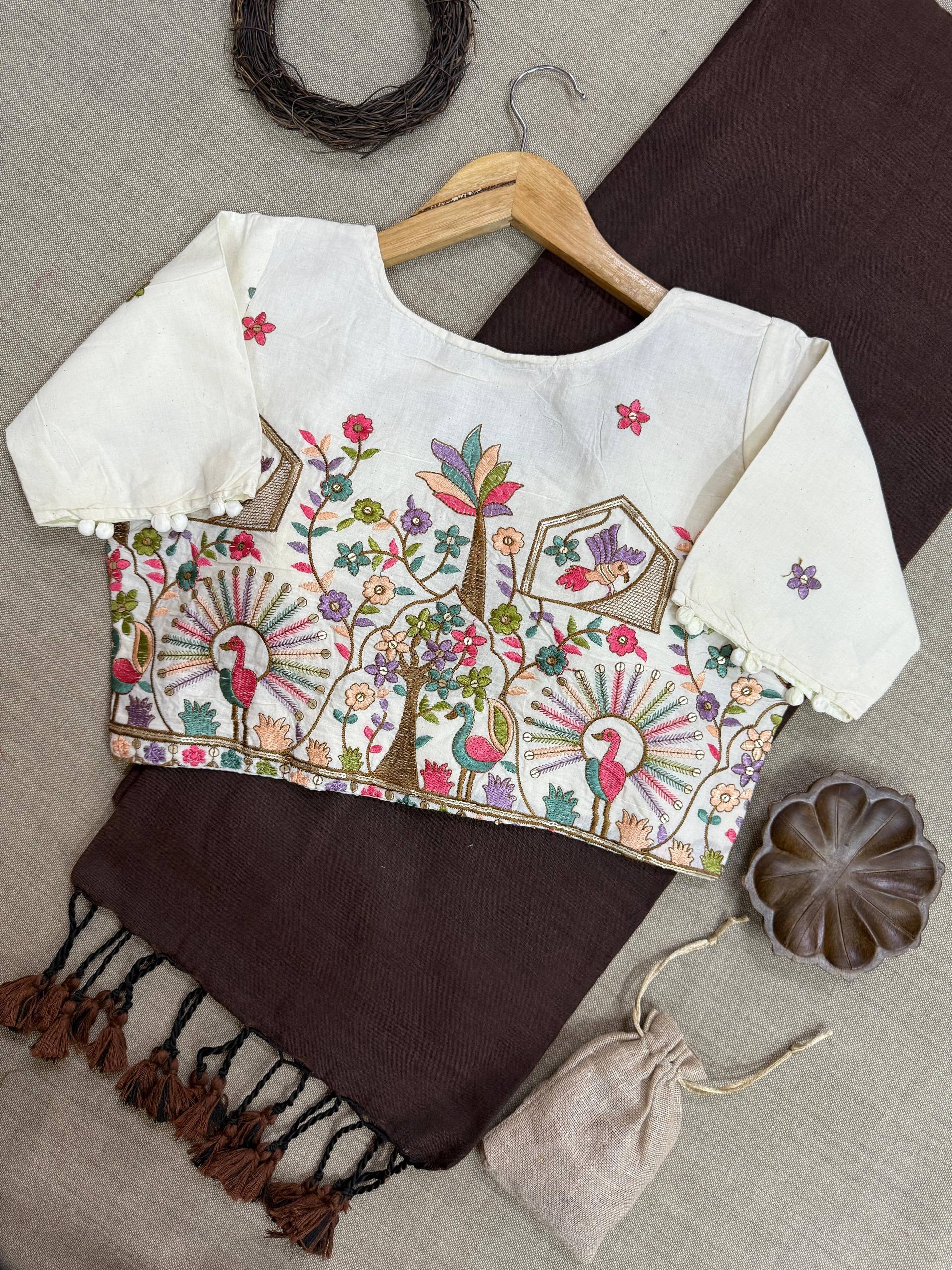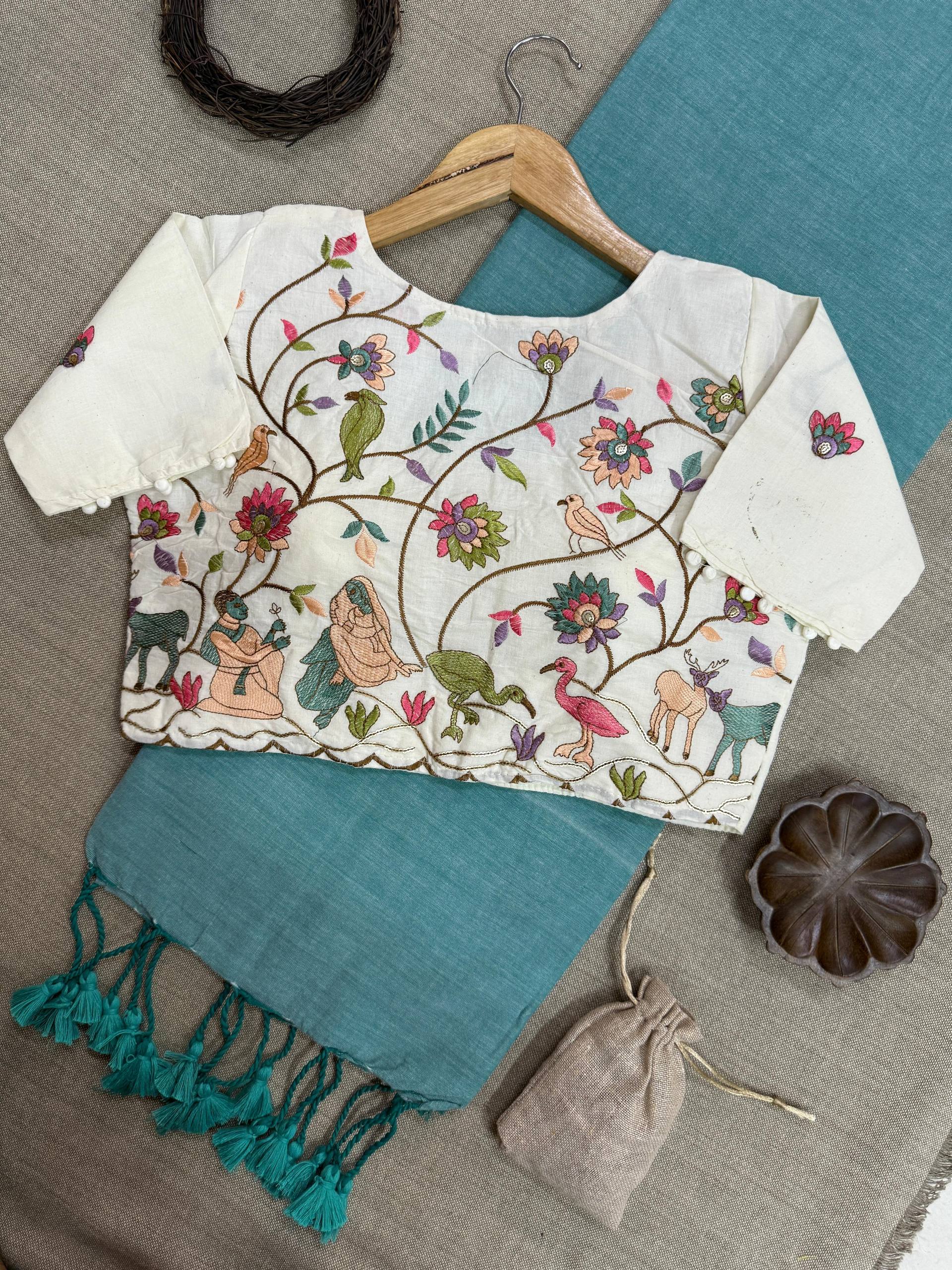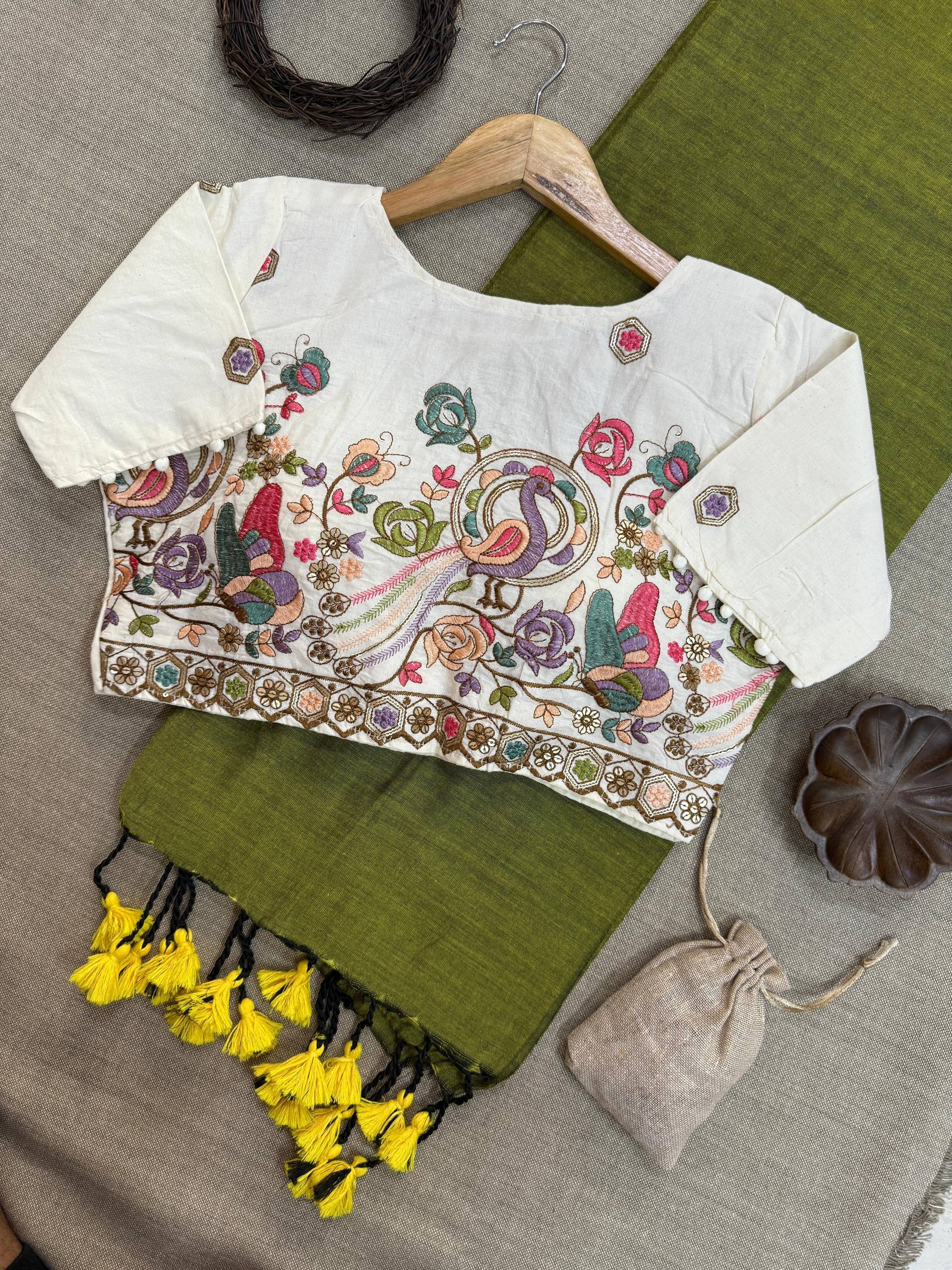 Blouse Fabric: Heavy Embroidery with Aura Cotton, padded with pure cotton lining