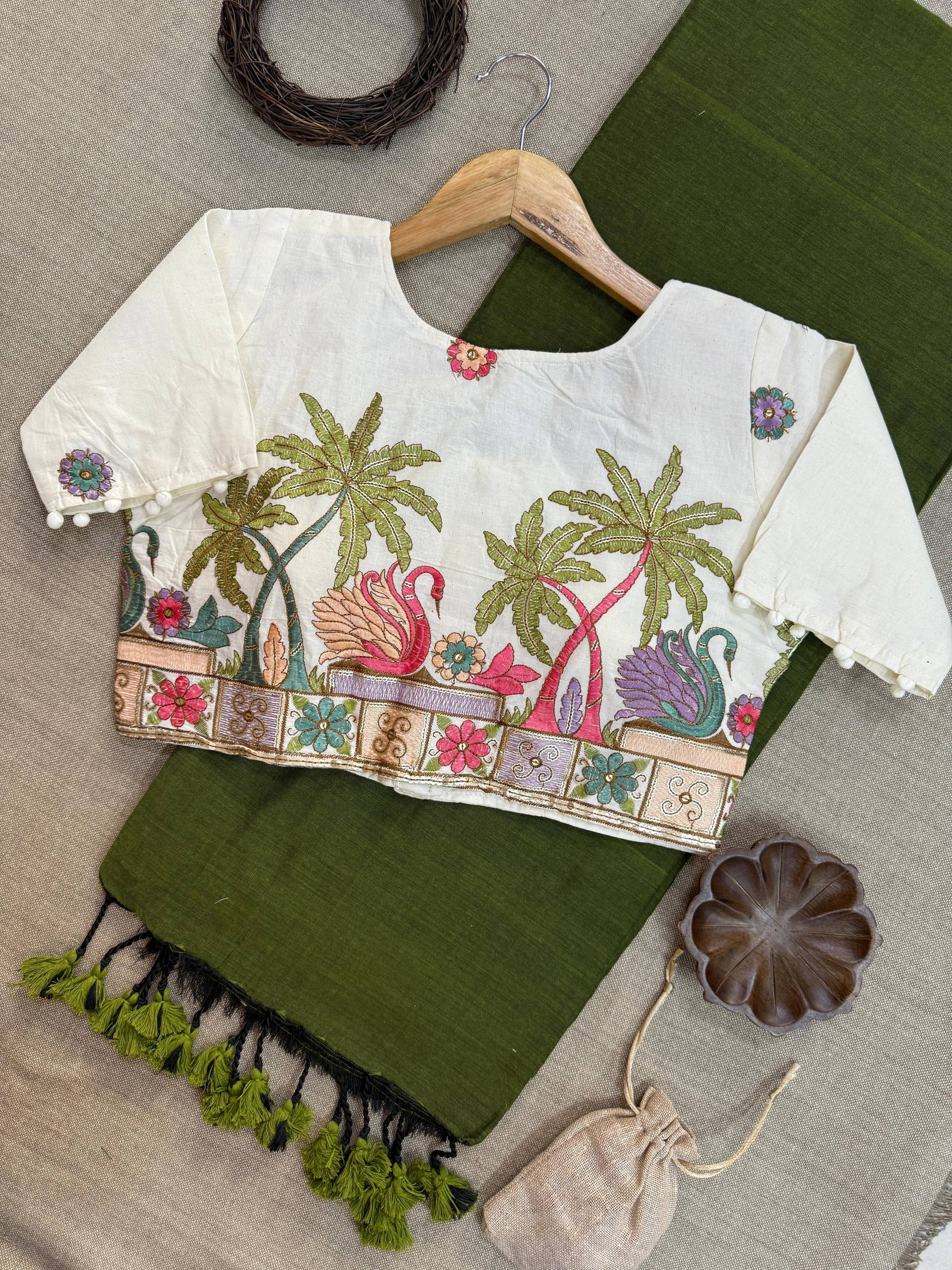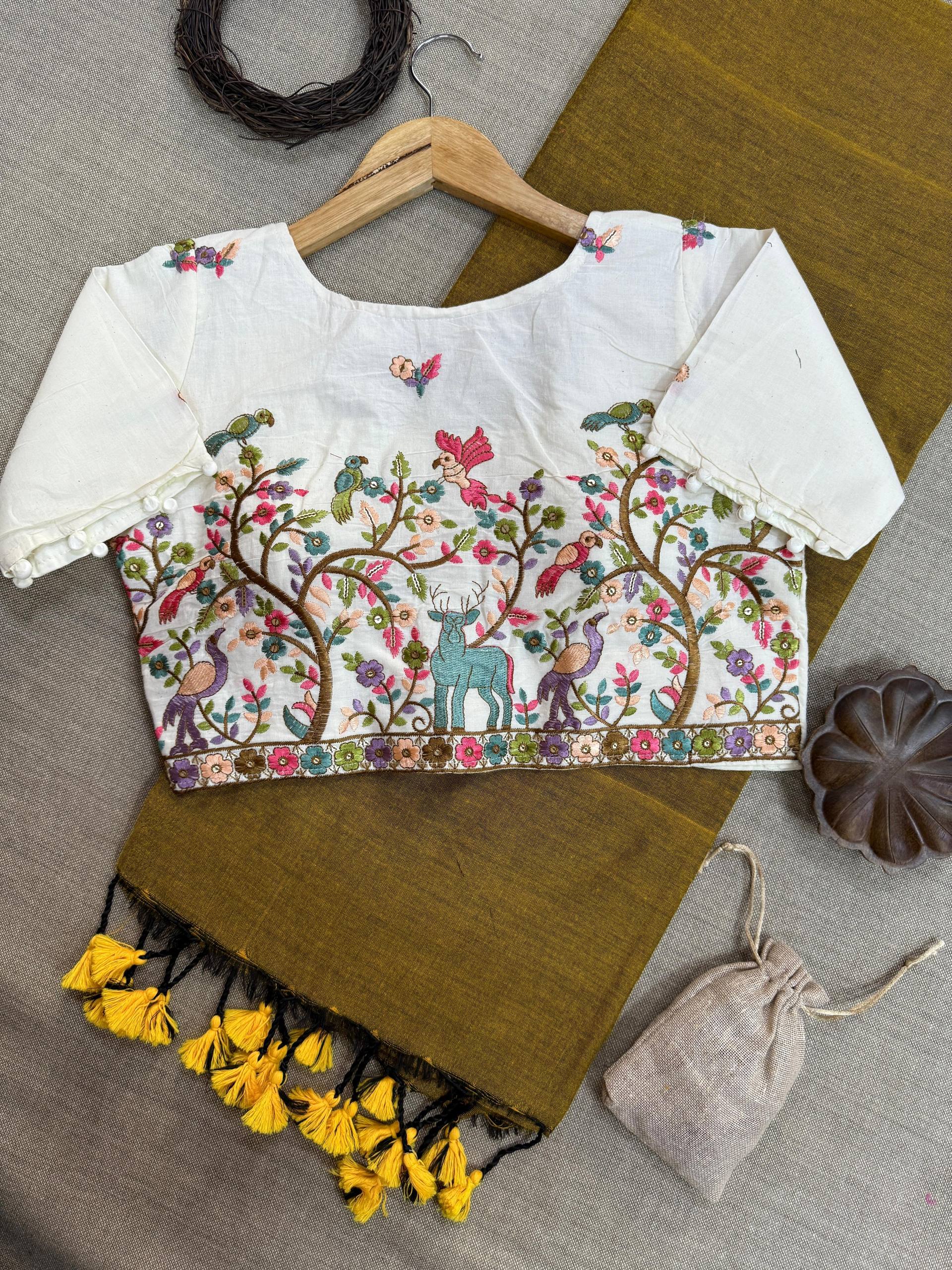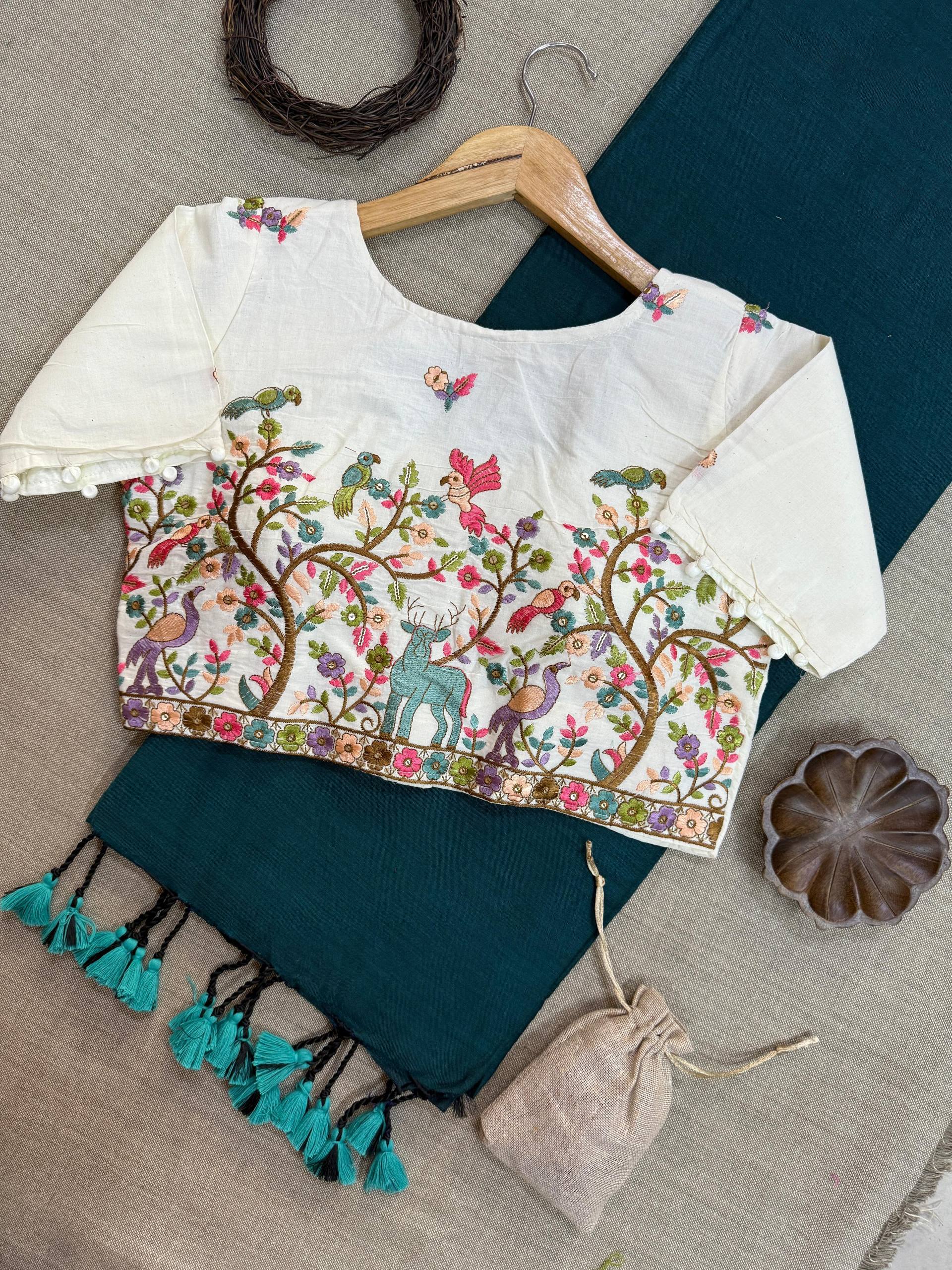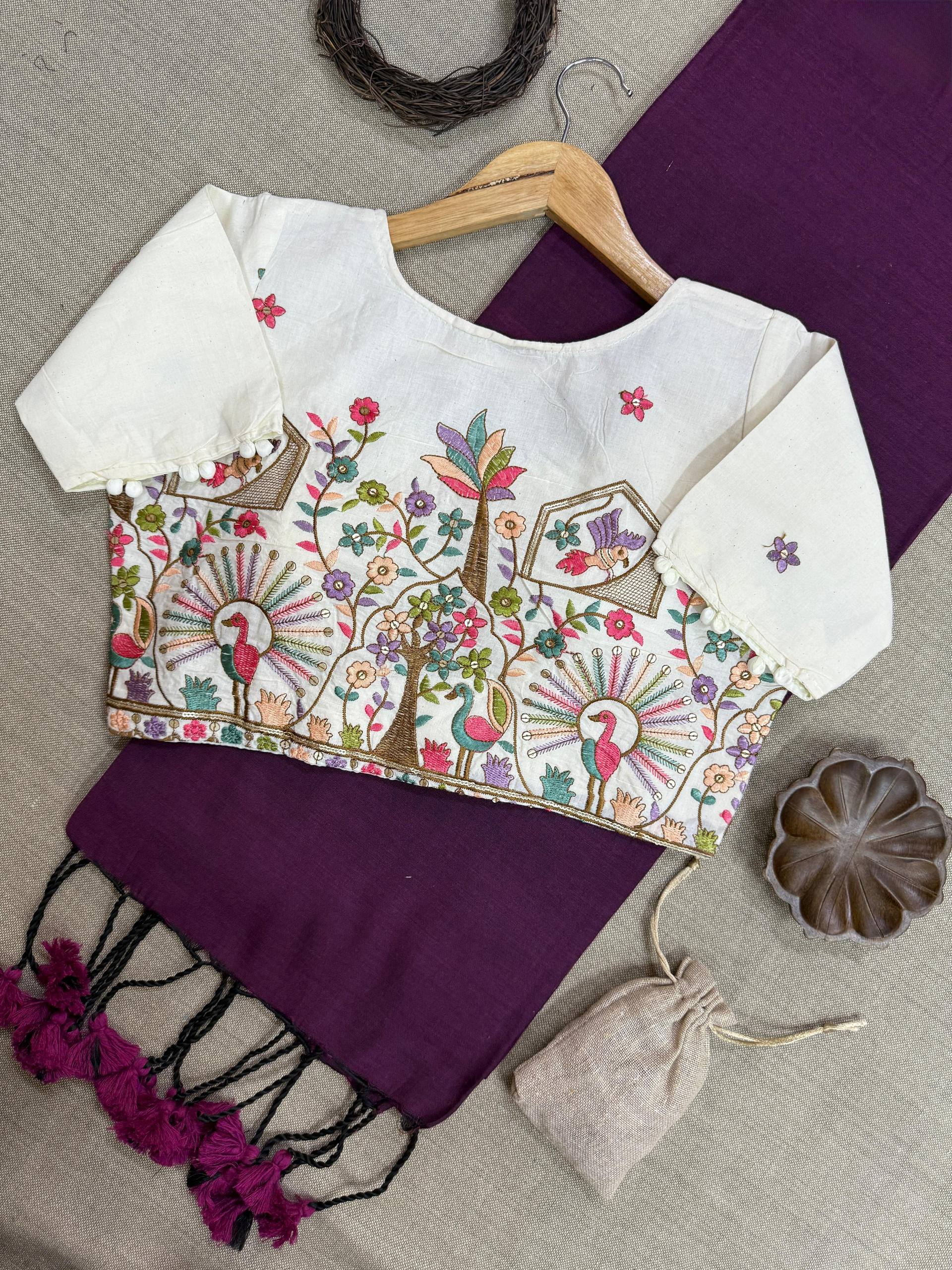 Blouse Fabric: Heavy Embroidery with Aura Cotton, padded with pure cotton lining