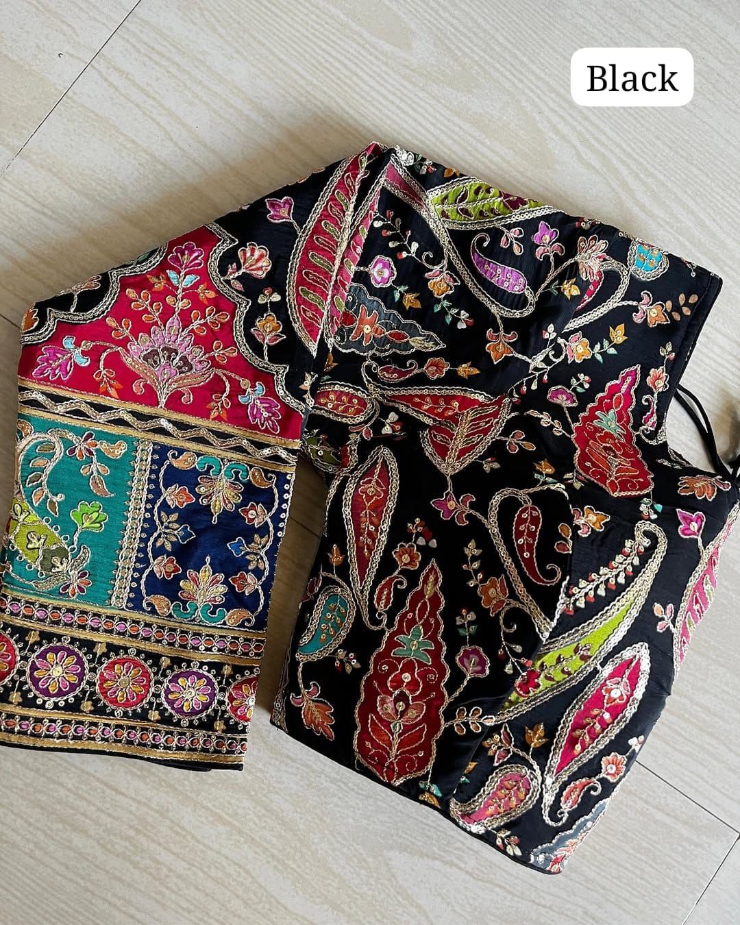 An Exclusive Wedding Blouse Collection crafted in Heavy Chinon Position Print for a luxurious festive look.