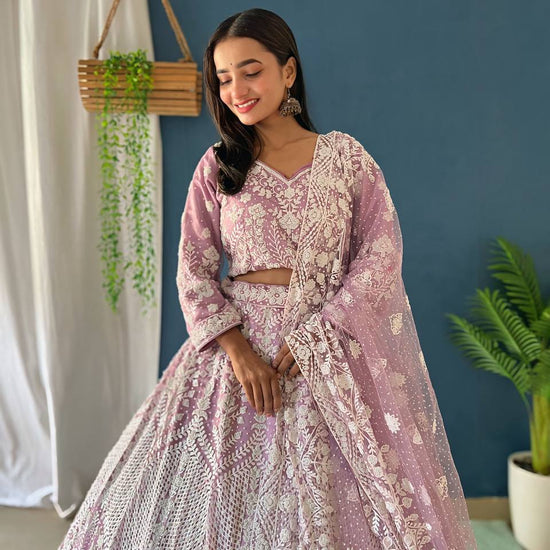Heavy Mono Net Pure Bitts Pearl Design Work Lehenga