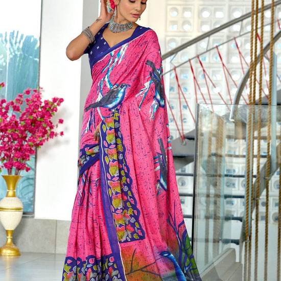 Saree Length: 6.30 Mtr Pure Mulmul Cotton Heritage Style Hand Print Saree with Blouse Piece