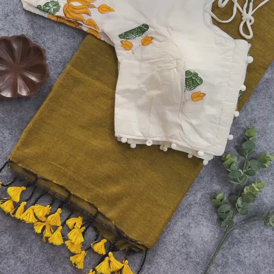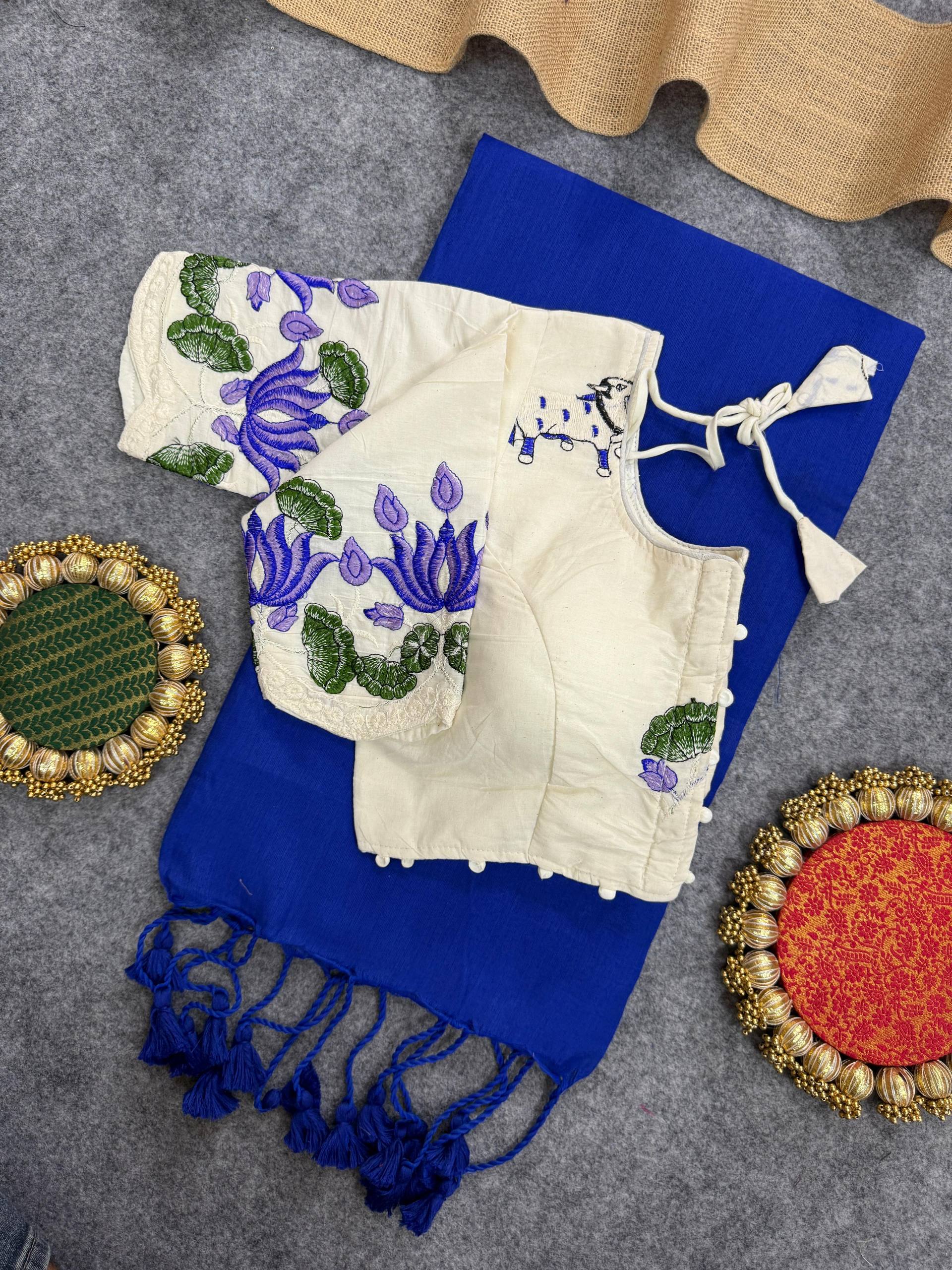 Khadi Cotton Heavy Embroidery with Aura Cotton With Designer Embroidery Blouse