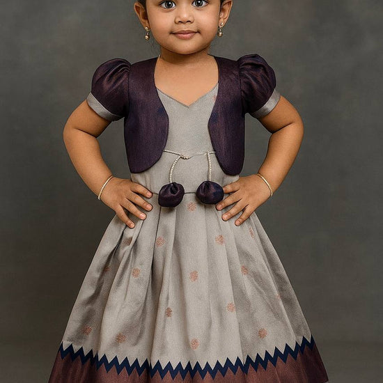 Kids Koti Gown with Jacquard Weaving & Embroidery