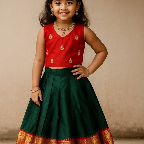 Kids Silk Lehenga Choli with Jacquard Weaving & Embroidery Lace