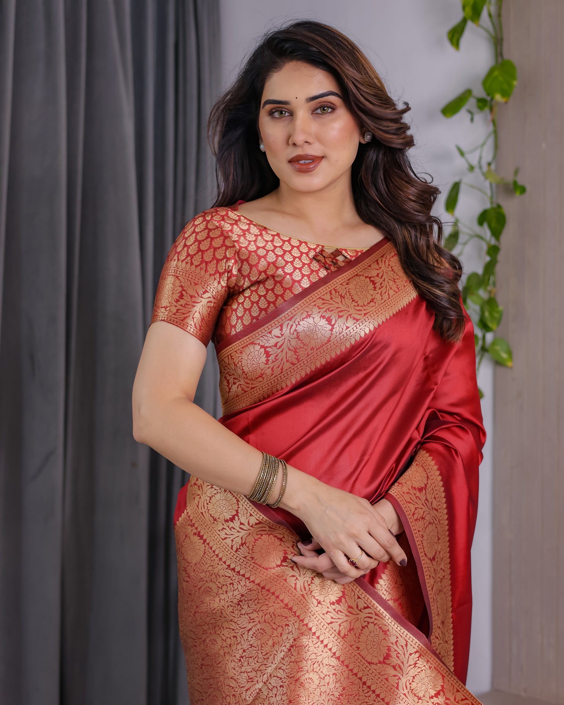 Lichu Silk Jacquard Weaving with Golden Zari Running Blouse