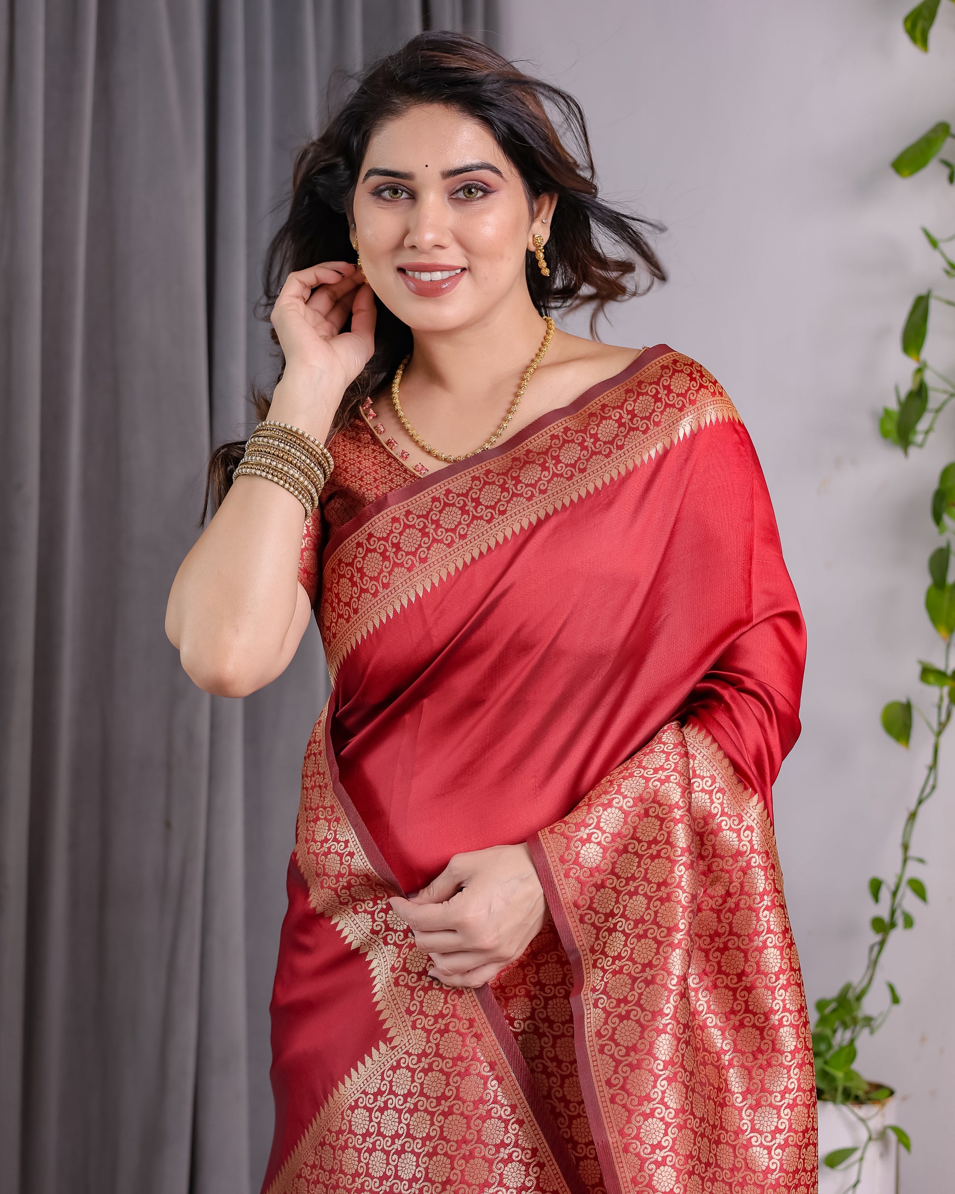 Lichu Silk Jacquard Weaving with Golden Zari Running Blouse