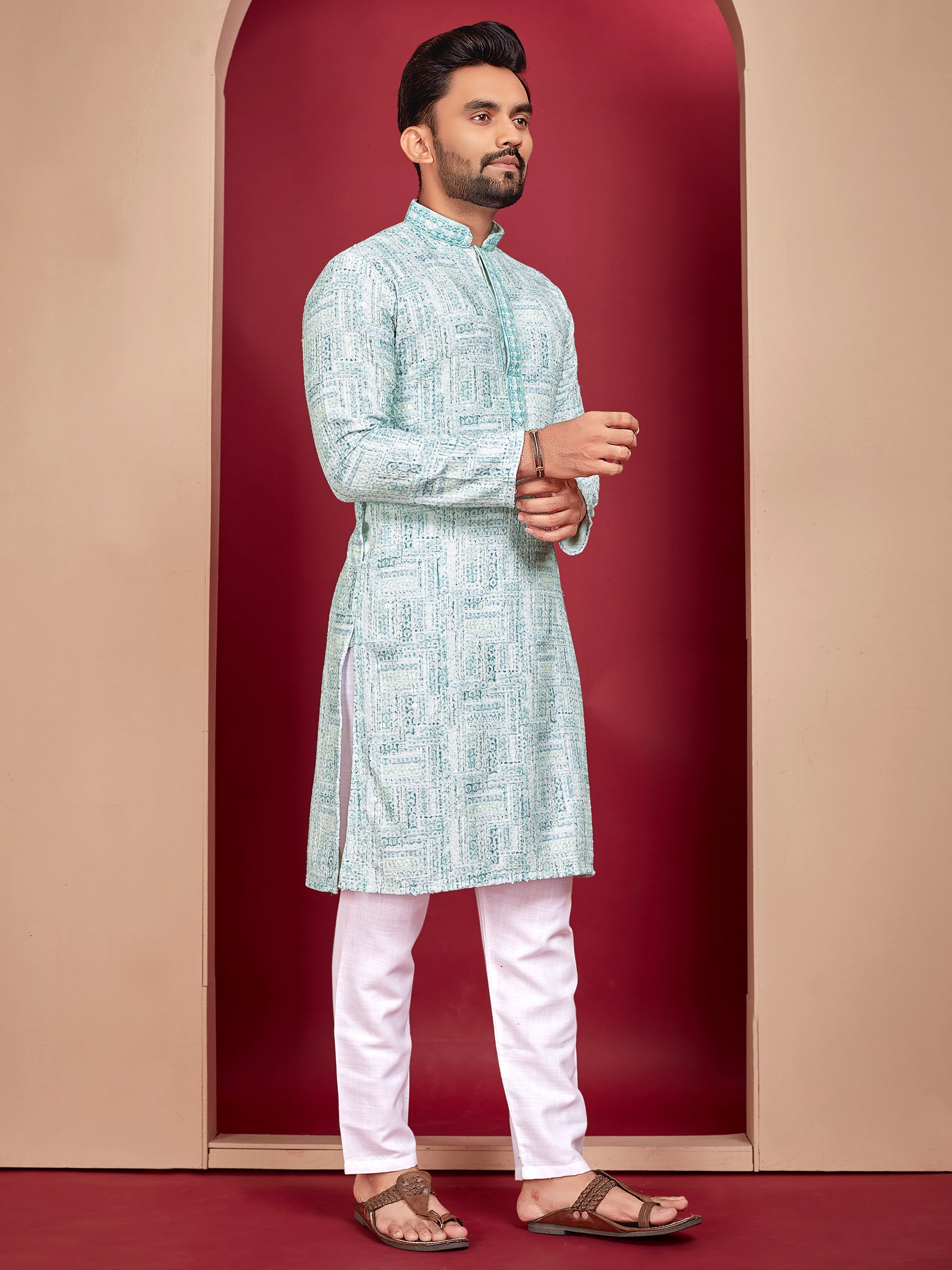 LUCKNOWI WORK WITH UNIQUE DIGITAL PRINT KURTA PAJAMA