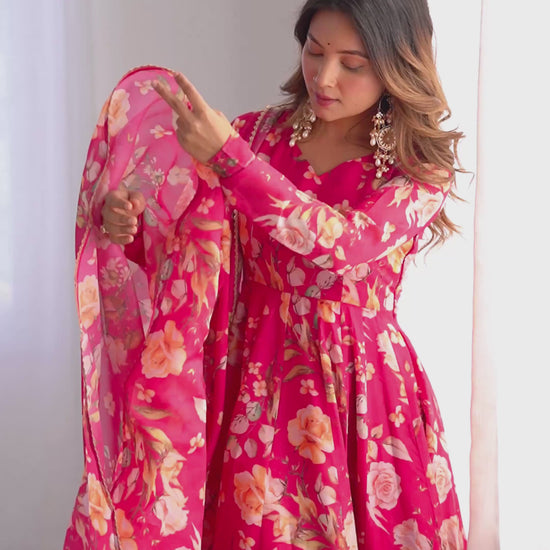 Organza Silk Print Anarkali Dupatta Set