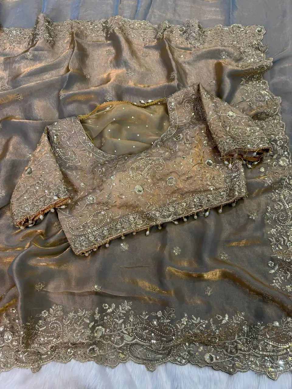 Work: C -pallu 3 mm multi sequence embroidery work with Sequence Butti in Body Parts.*