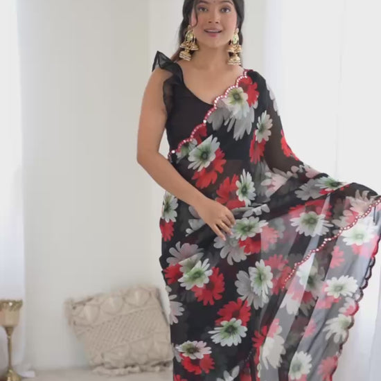 Printed Georgette Silk Saree with Mirror Work Border