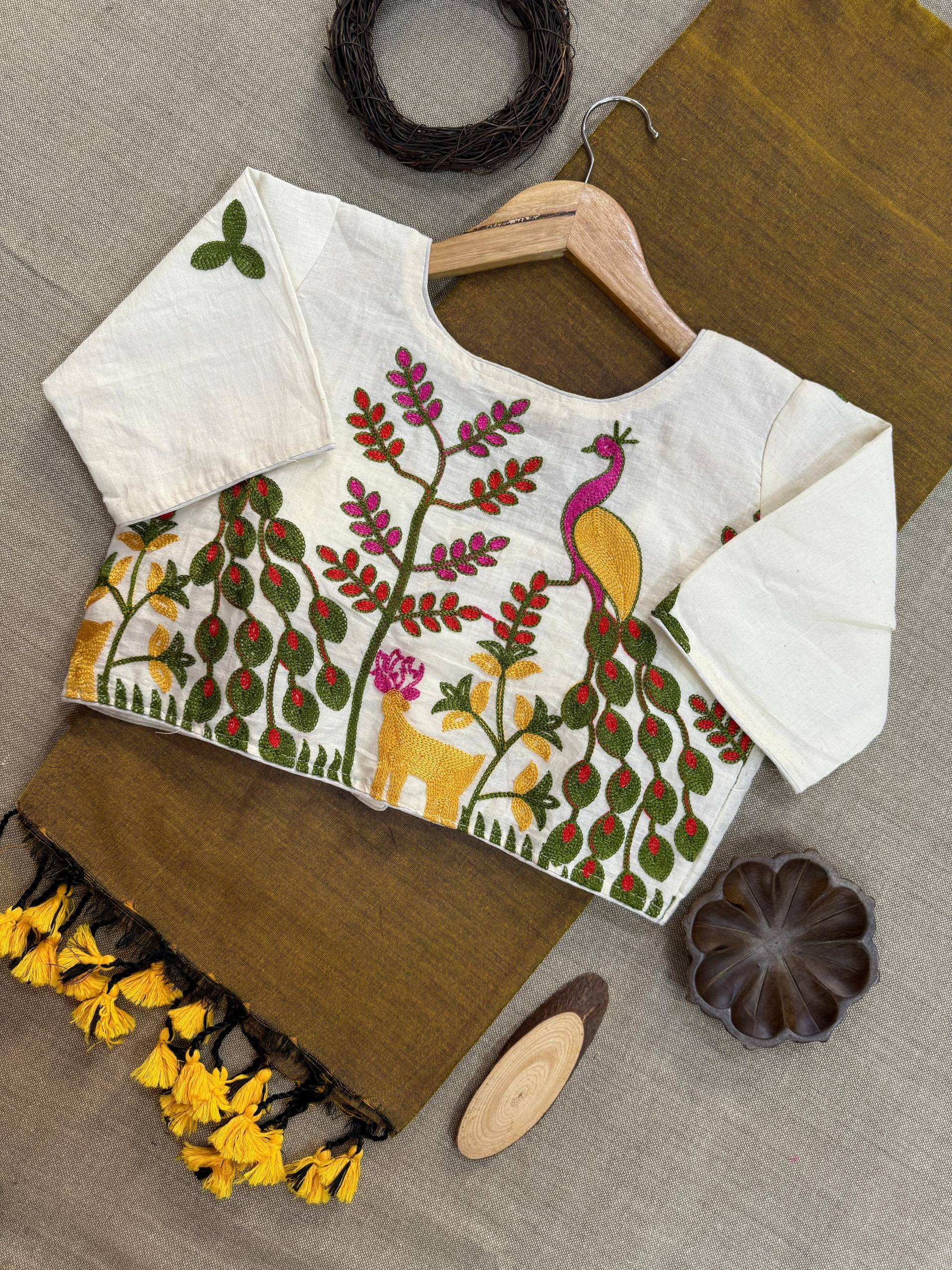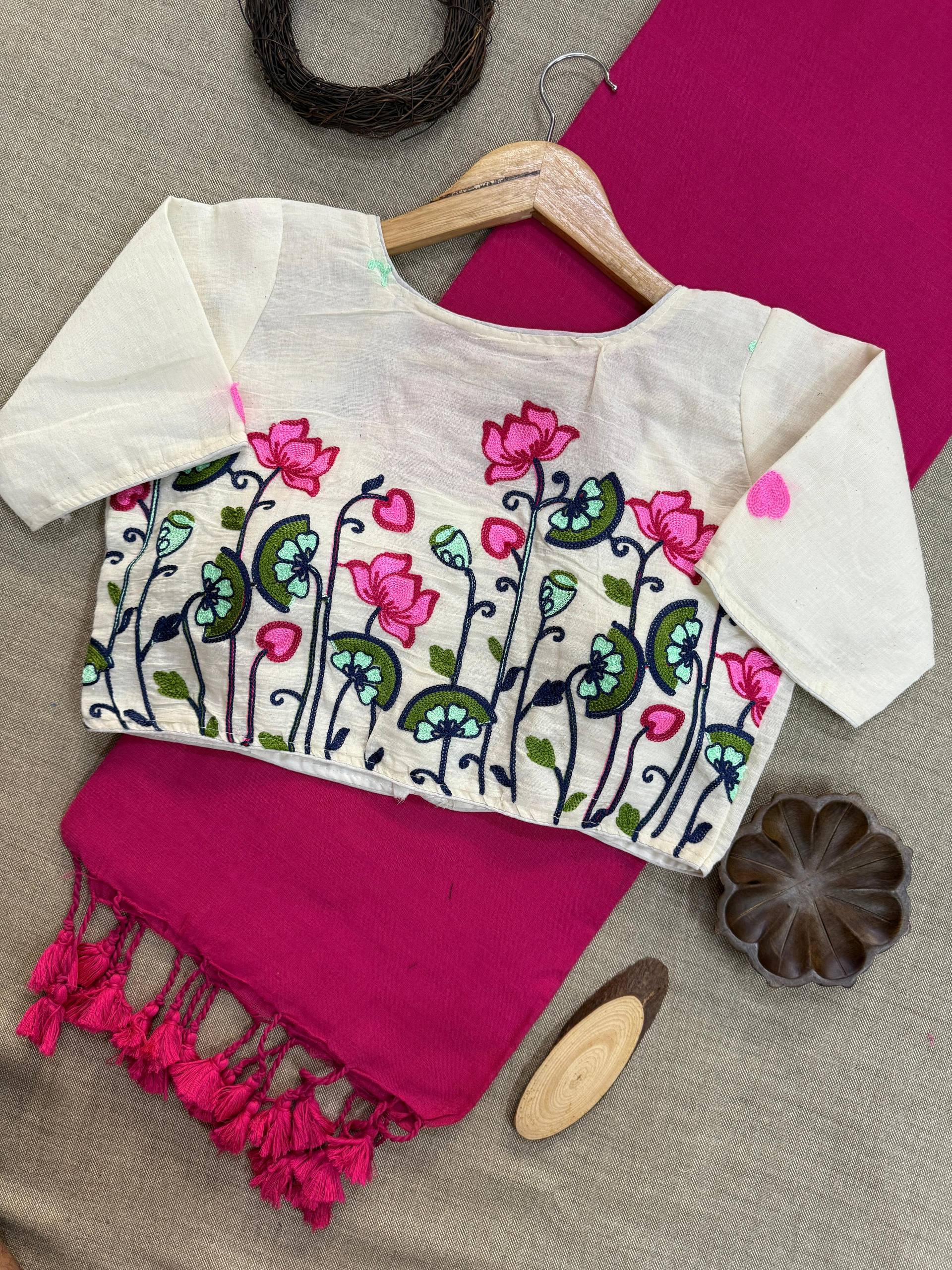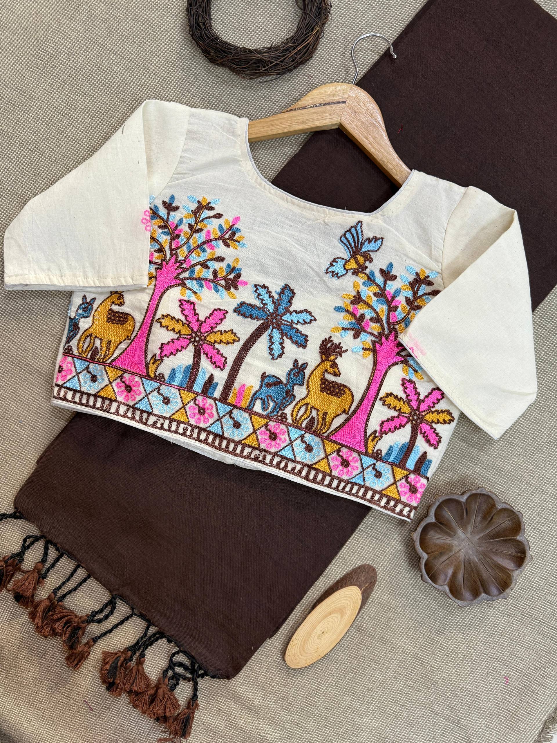 Pure Khadi Cotton Heavy Embroidery with Aura Cotton With Designer Embroidery Blouse