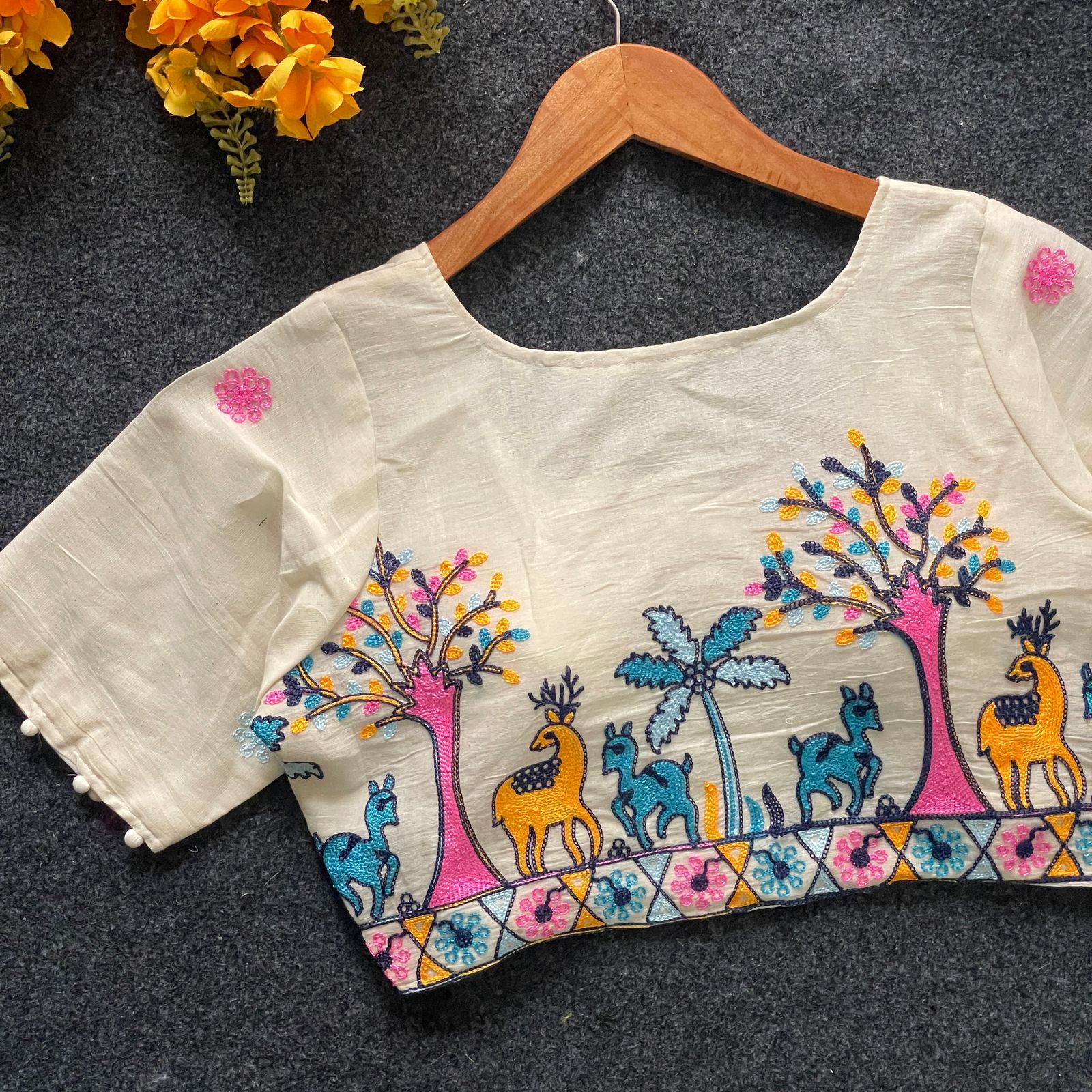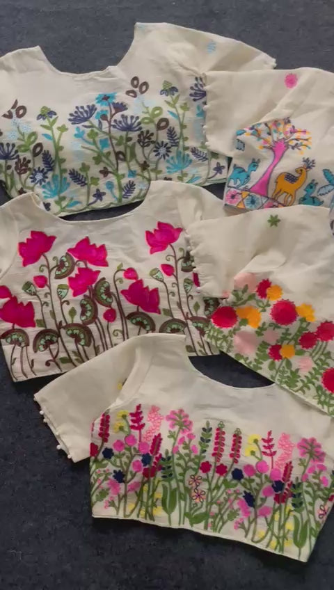 Pure Khadi Cotton Partywear Blouse Heavy Stitching Heavy Padded With Beautiful Works, Sleeves Front Open Style