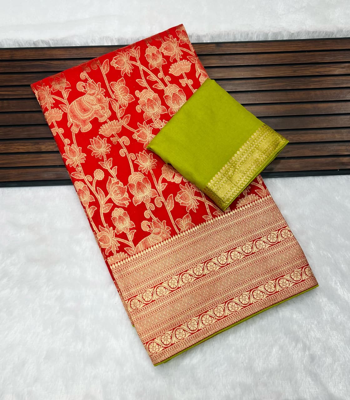 PURE KADI CREAP GEORGETTE SMOTH AND SOFT JAQURAD DUBBLING JARI WEAVING MEENAKARI FIGURE BODY AND ELEGANT BORDER WITH RICH PALLU RUNING BLOUSE PIECE