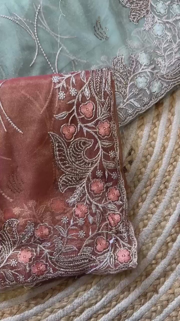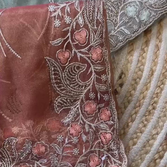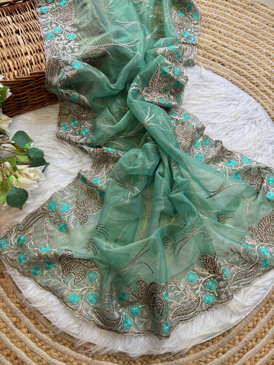 Pure Tissue Silk in solid color Saree With Embroidery viscose thread work with zarkhan
