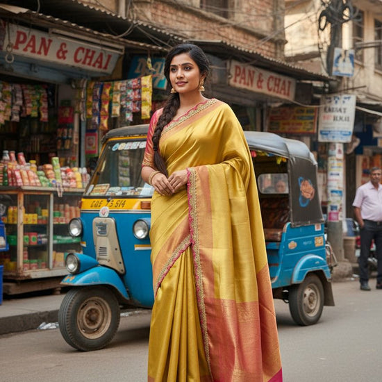 Red Carpet Style! 👗✨ Soft Tissue Silk Saree with a rich pallu and brocade blouse.