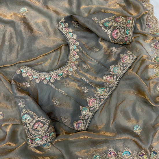 Blouse Fabric: Space Silk with sequins cording work (Unstitched)