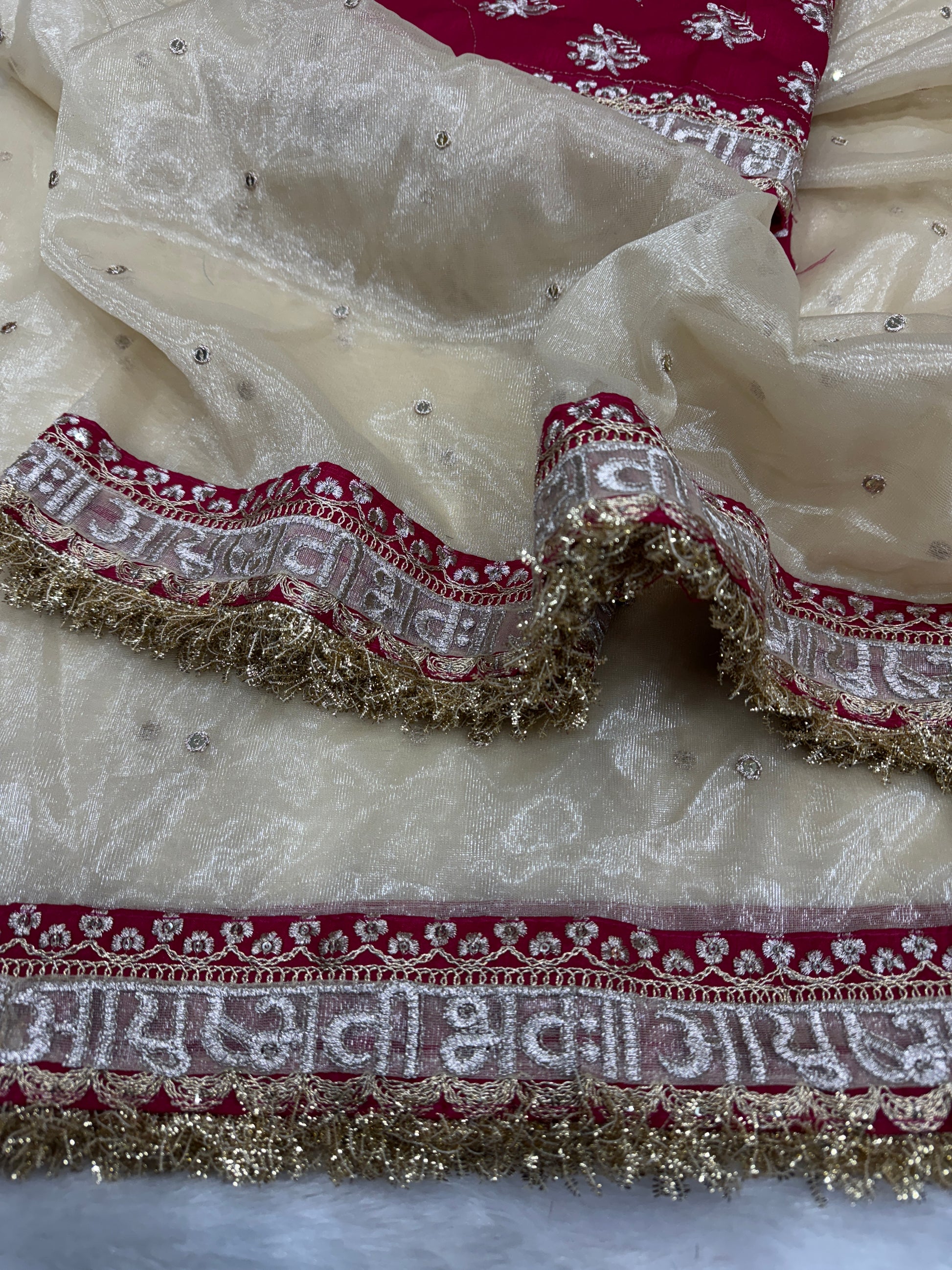 Soft Twill Net Sequins and Dori Embroidery with Fancy Lace Border Saree